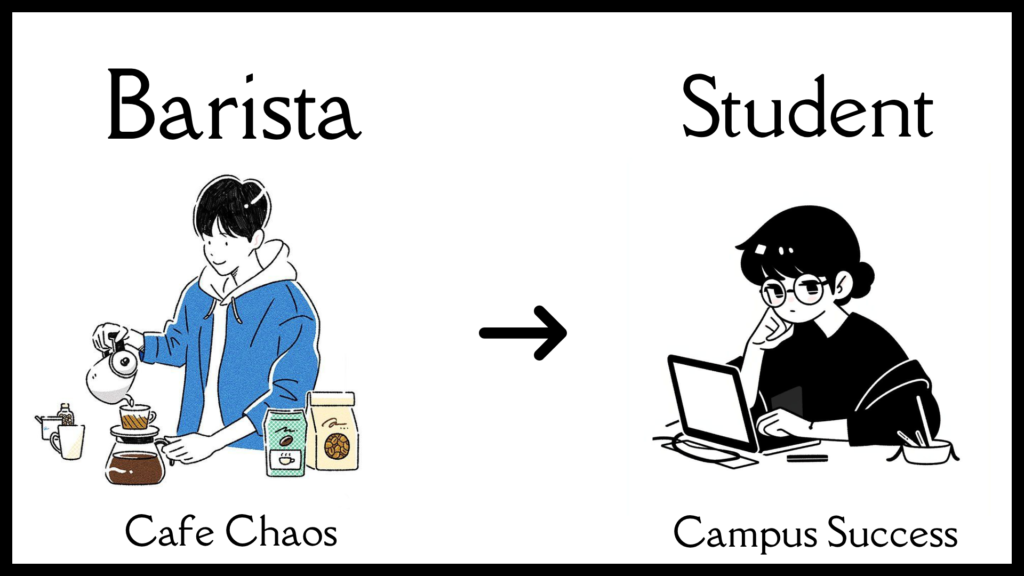 My experience from working part-time at a cafe during my gap year rewired my brain. Between the 8 AM shifts, the avalanche amount of orders coming in, and the difficult customers constantly chasing after the order after not even 5 minutes of waiting, I didn’t just learn to craft coffee—I learned mental resilience and how to work efficiently. I realized that surviving lunch hour rush isn’t so different from surviving finals week in university. Spoiler: The key to it is learning how to look past the chaos and urgency, and just focus on putting one foot in front of the other.